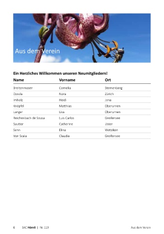6 SAC Hörnli | Nr. 119 Aus dem Verein